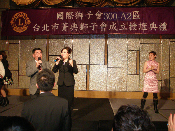 美麗隊伍-菁典獅子會1/10新成立授證,35位獅姊加入獅子家庭,首屆會長鄭美雲獅姊,輔導母會是A2區第一大會菁英獅子會,創會人黃秀榕獅姊,兩位導師請到邱第一副總監及李第二副總監,陣容堅強.還有馬總統也拍電致賀,全場冠蓋雲集,在台北市弦樂隊悠揚的音樂中,成功完成一場高水準的授證典禮.