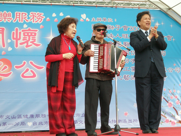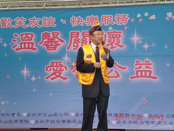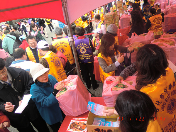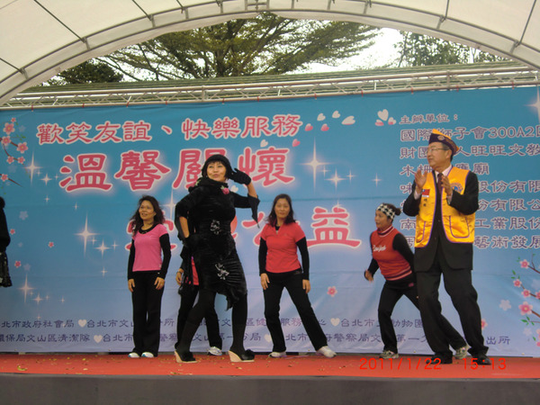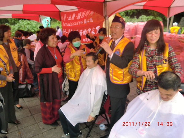 "溫馨關懷 愛心公益" 1月22日在北市立動物園前展開, 關心文山區低收入戶,從發放用品食物,愛心義剪到愛心義演, 天公作美,寒冷的天氣也變得暖和,A2區獅友奉獻愛心,李秘書長與 阿姑專區主席親自張羅許多物資,溫暖了更多需要關心的家庭.