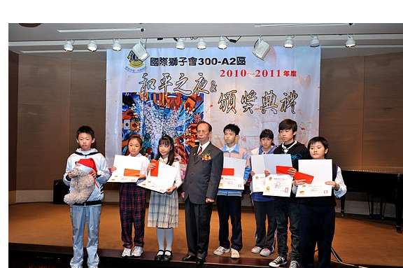 國際獅子會300A2區2010-11年度國際和平海報比賽頒獎典禮,於12月14日在國賓飯店隆重舉行,由國際和平海報委員會主席黃 忠主席,有五十多分會踴躍參與協辦。