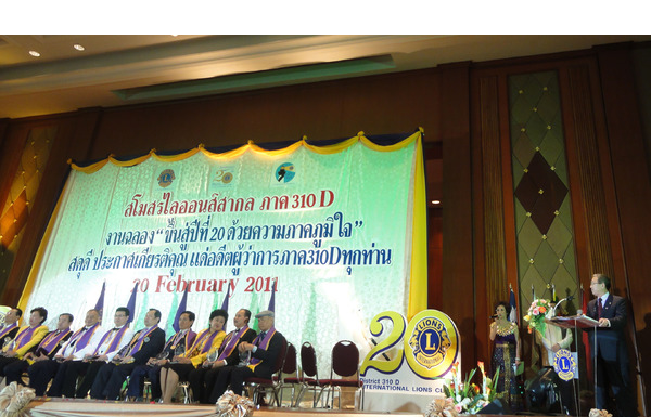 3月19日李總監率本區內閣成員參加泰國姐妹區310-D區20屆紀念慶典及結盟典禮,受到310-D 區總監及獅友熱烈歡迎和高規格的接待。李總監致詞時,強調此行能增進兩區獅誼