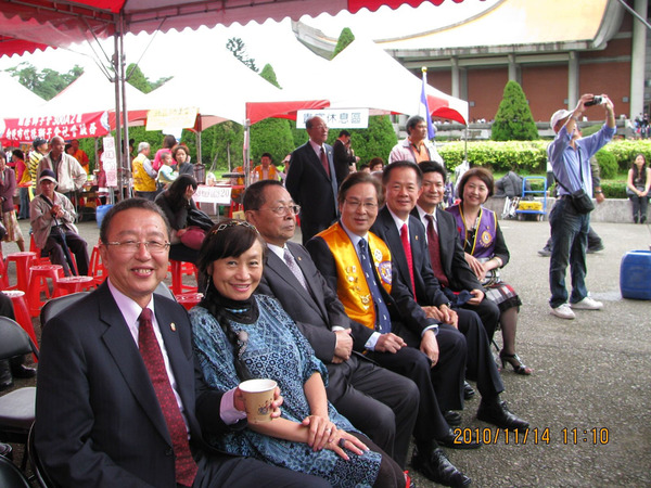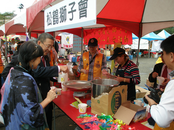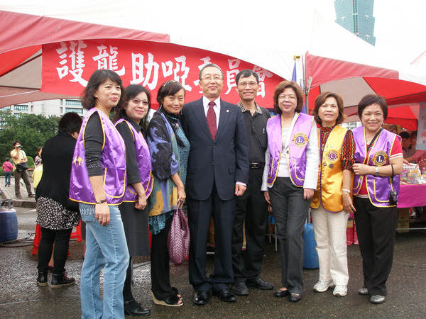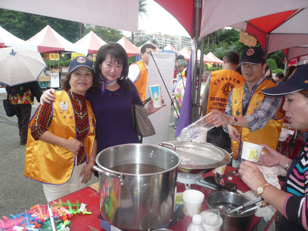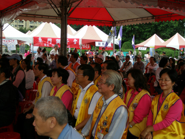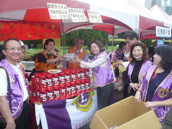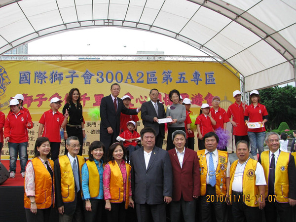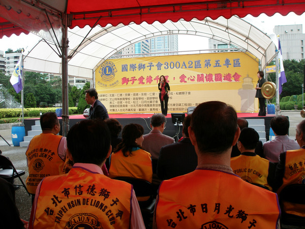 第五專區社會服務11/14在國父紀念館前舉行,原本陰雨綿綿的天氣,因獅友有愛,天氣變得更舒適怡人,啟聰、啟明、啟智及文山特殊教育學校的孩子們,像天使般的活潑,個個表演精彩動人.主辦單位提供15分鐘敲愛心鑼時間,讓獅友們每敲一聲鑼就捐一份愛心,獅友們奉獻愛心非常踴躍,隊伍大排長龍,充分展現「WE SERVE」的獅子精神.